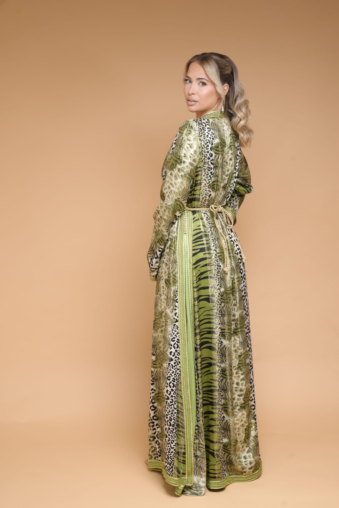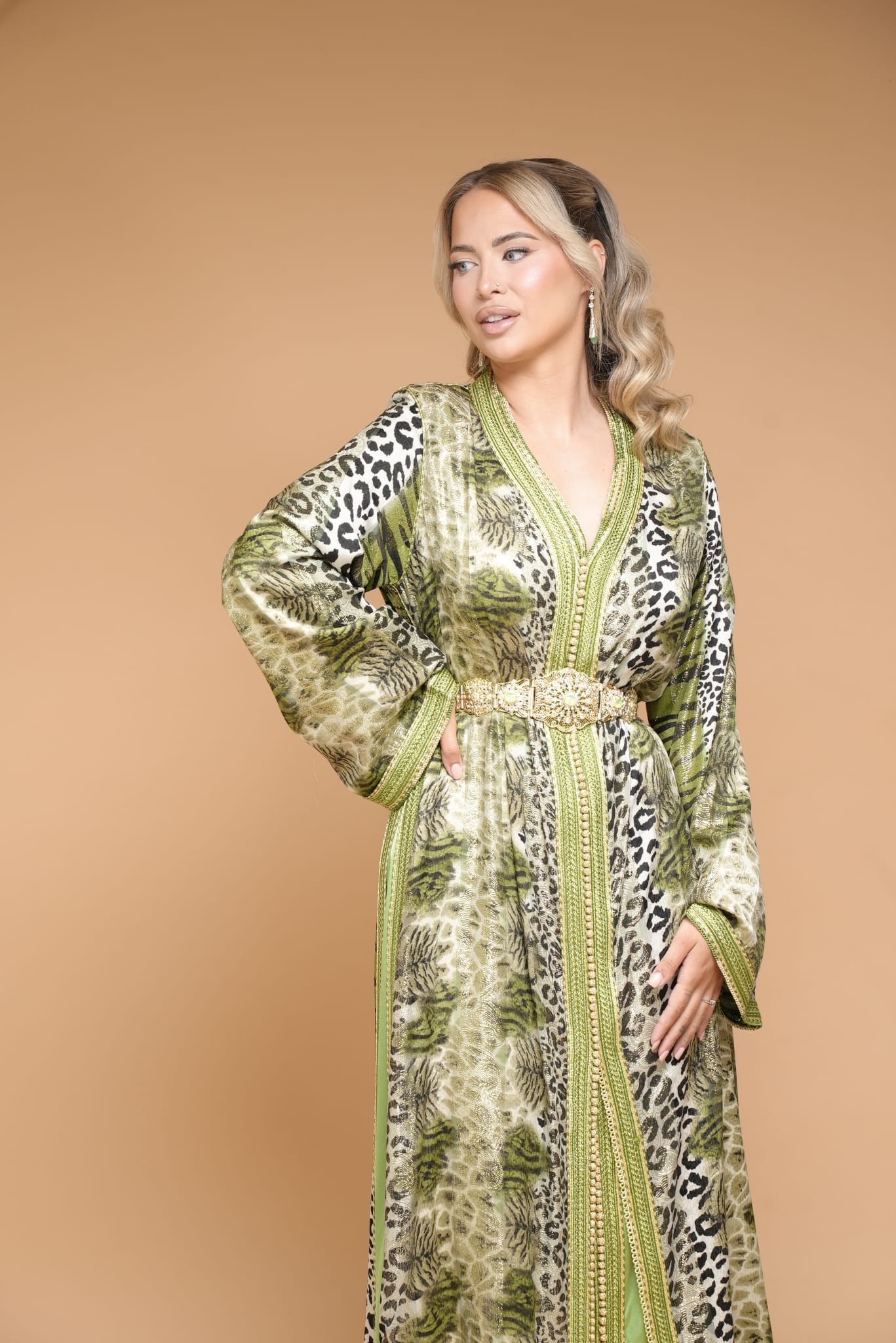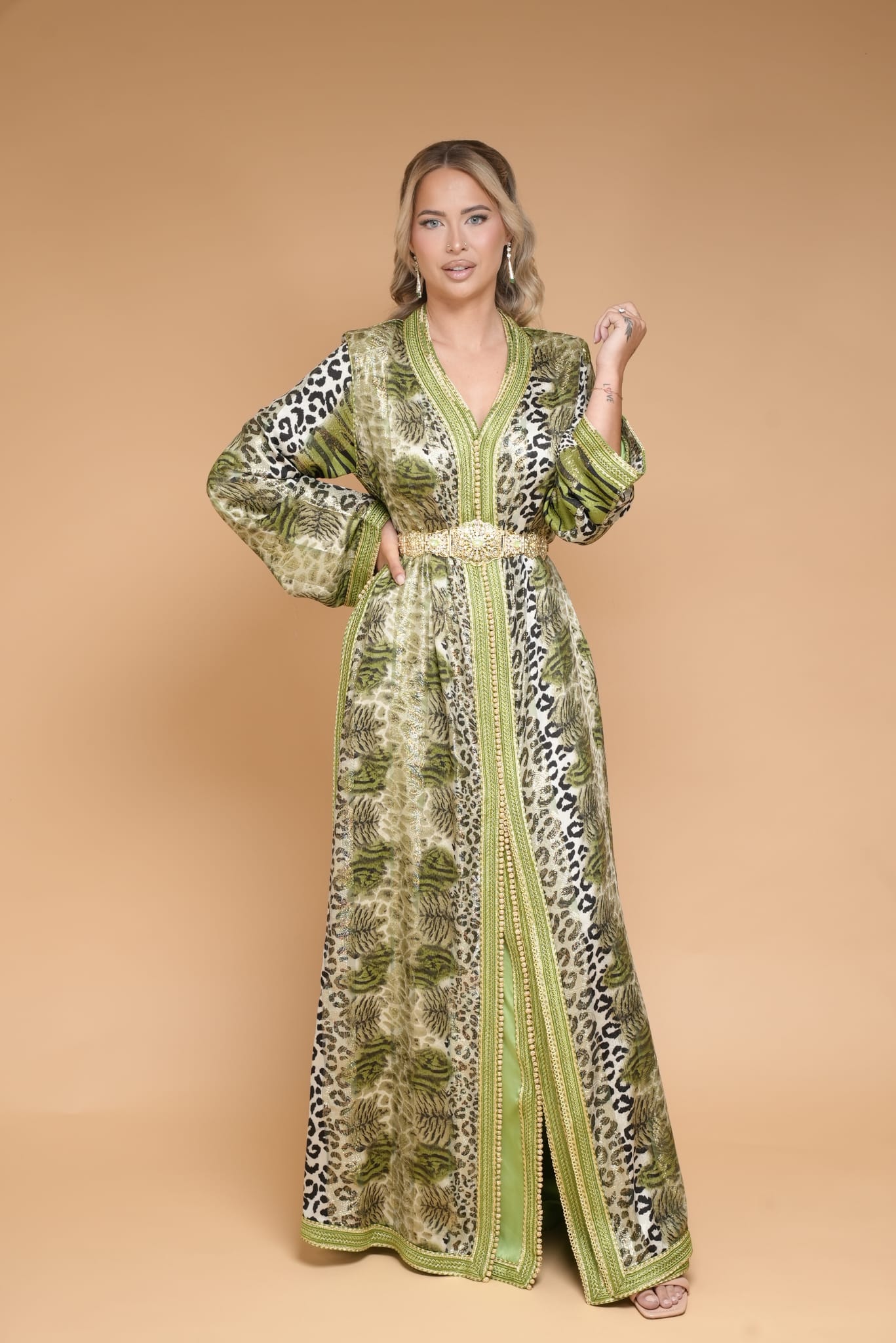 - Takchita 2 pièces johara imprimé animal d'un beau vert pomme. La tradition est à l'honneur.