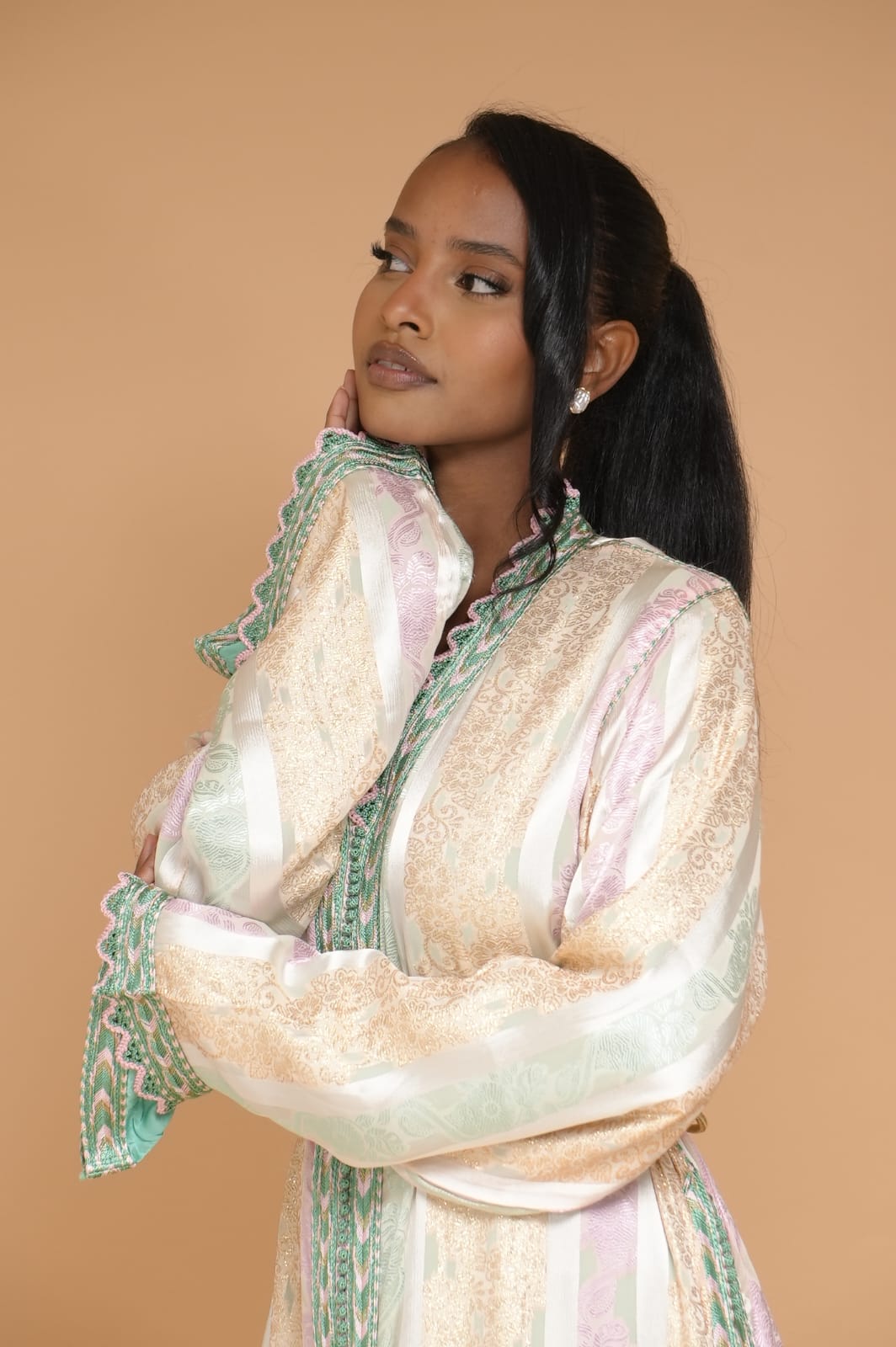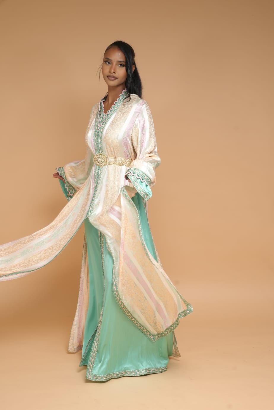 - Takchita 2 pièces johara traditionelle aux couleurs pastel.