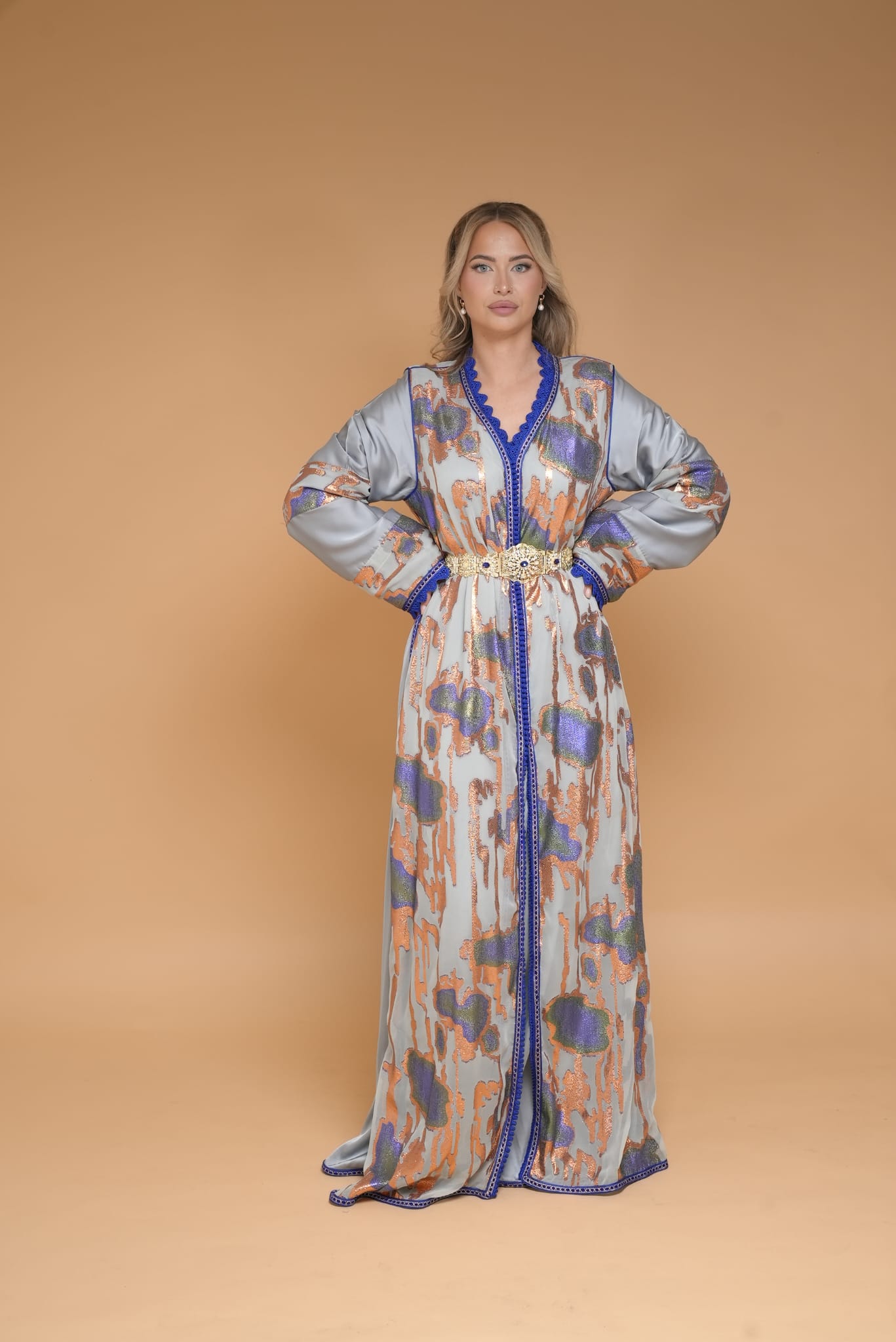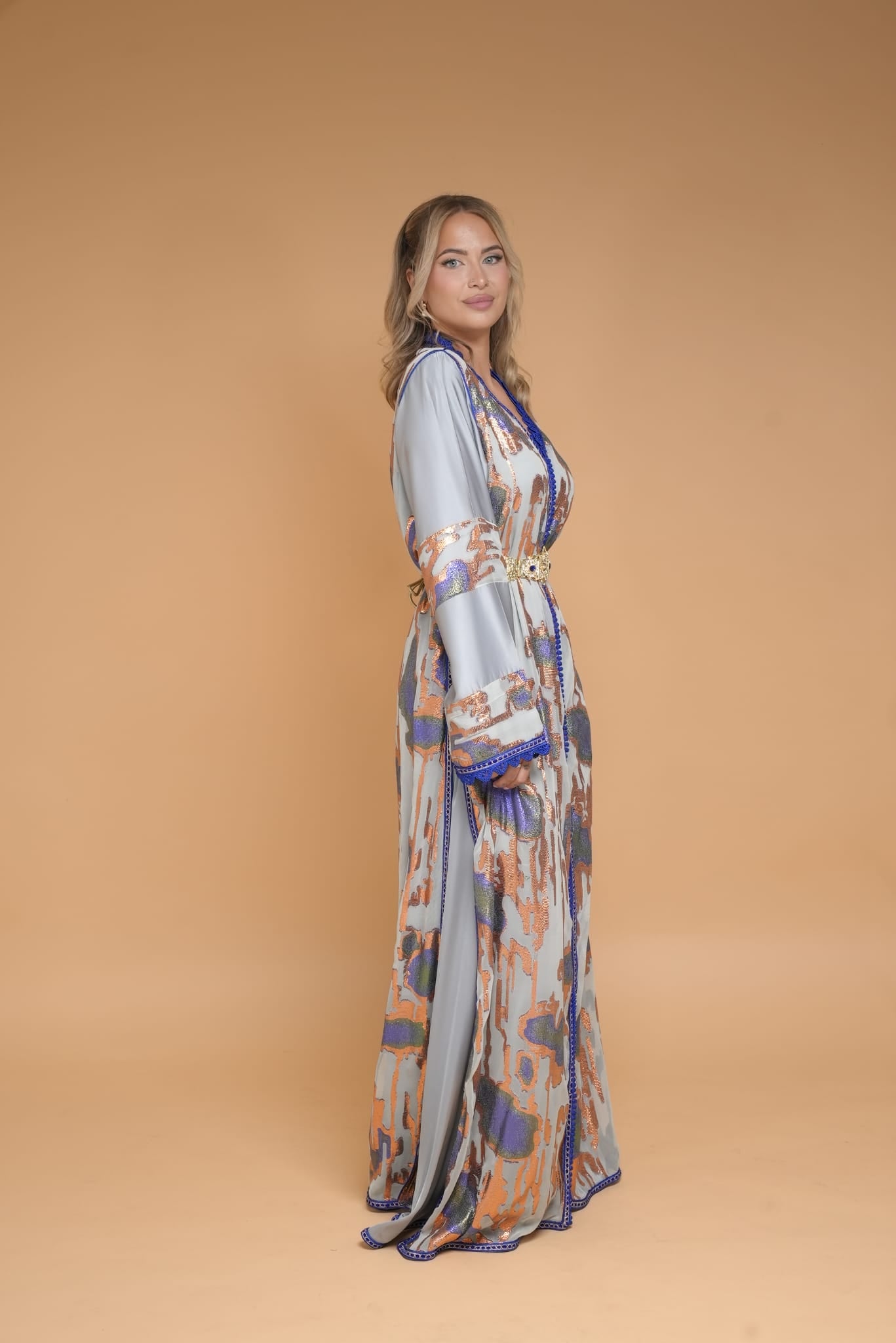 - Takchita 2 pièces en tissu tlija bleu et bronze