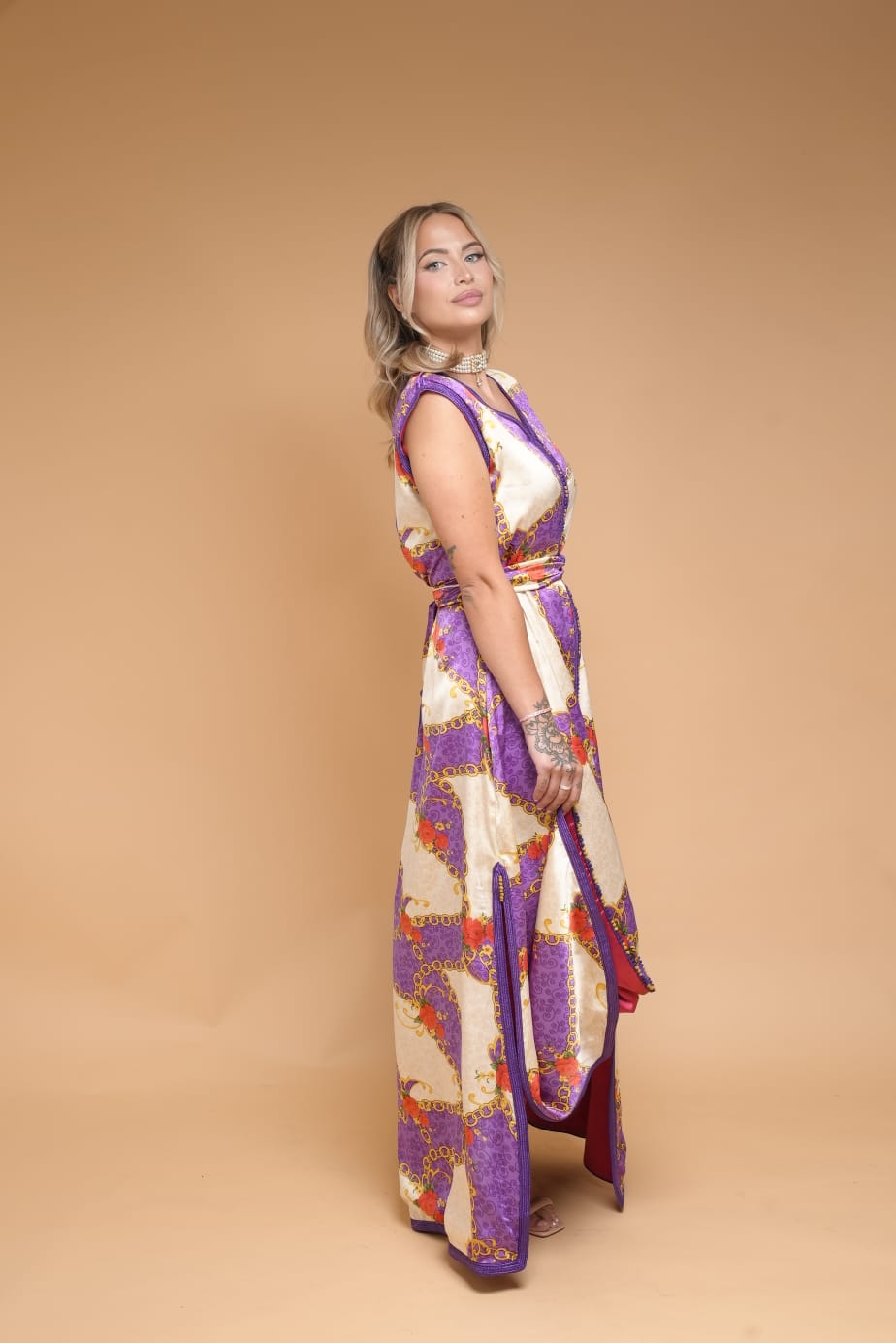 - Caftan simple multicouleurs, doublé d'un satin de soie.